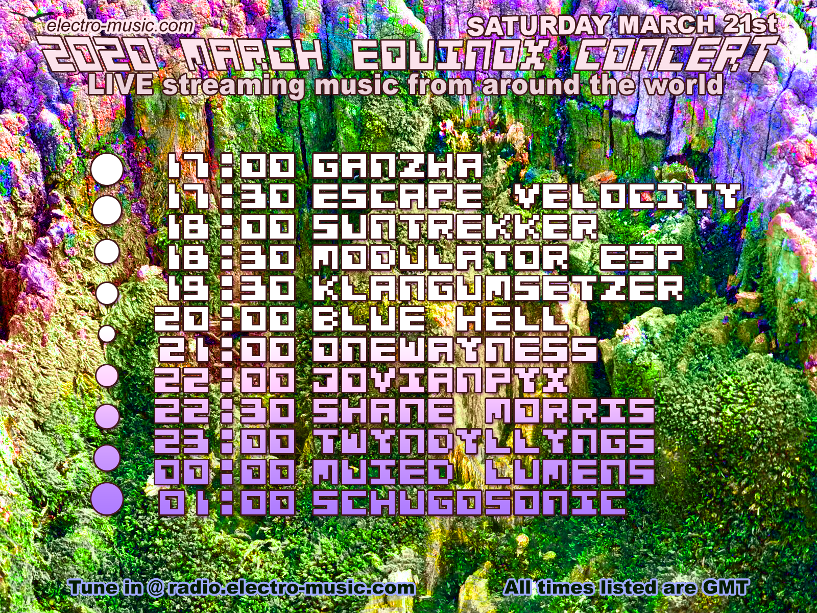 This event will be on electro-music radio on Saturday March 21st 2020.