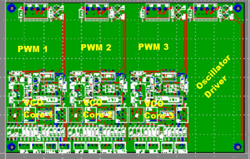 Looks like I can indeed put 3 VCOs plus an Oscillator Driver on a single board! This may get very close to the whole oscillator section of my JH-5, just on a single 160mm * 100mm PCB.