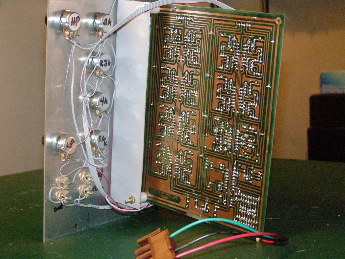 | View of the front panel. I layed out the knobs to occupy four columns to fit onto a double size (6"x9") panel. |