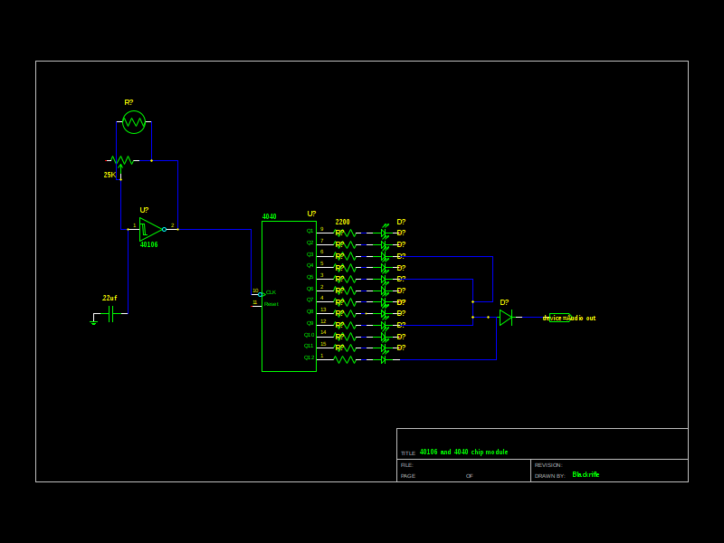 Was just trying to figure out how to use the software for the schematic. I do have all the 40106 inputs tied to ground. However I did not tie the reset of the 4040 to ground. Could that be why some people commented about two separate frequencies from the sound file I uploaded? Hmm something to ponder on.