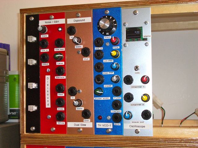 5. The MM is DIY down to the component level. Each module is built on stripboard or homebrew PCB. You can see that the front panels are colour-coded and no expense has been spent.