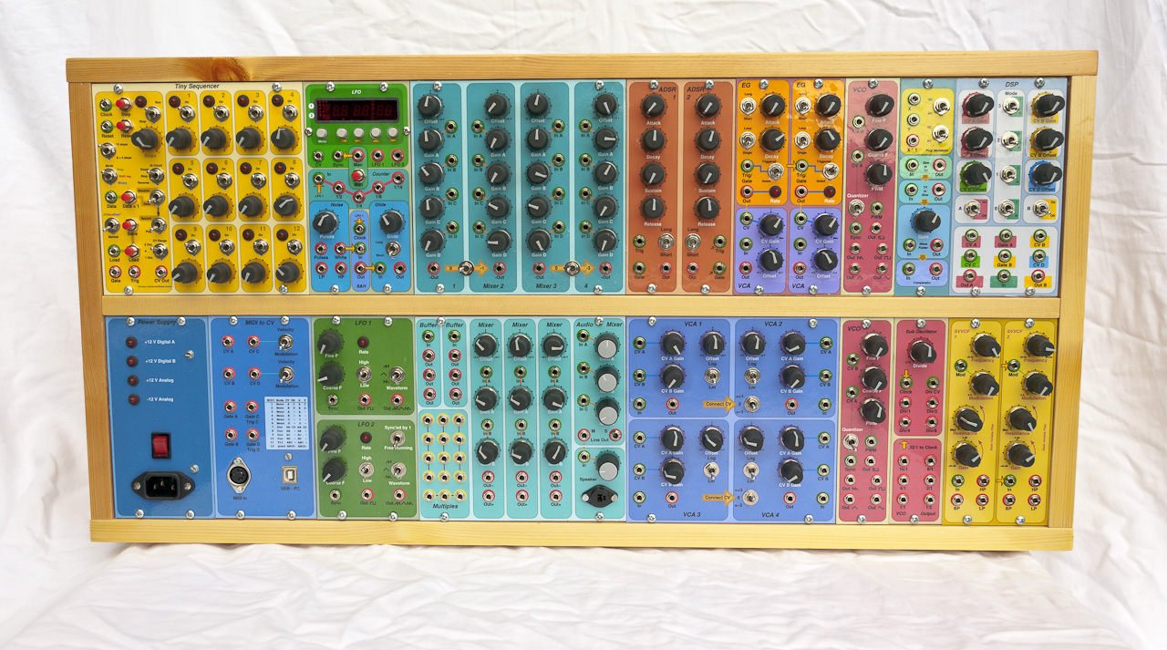 Hey guys! I'm new to the forum, but have visited it many times in the past few months on my quest to build my first modular system. I wanted to show off my system now that I have finally finished it! All the circuits were hand soldered on perf board and I used a label maker for the panels and 3D printed the knobs (Knobs are surprisingly expensive!). The filter doesn't have labels unfortunately because I used the label maker at my High School but I just graduated and don't have access to it anymore. I'm now working on my 2nd modular system which is a bit more ambitious because the cabinet is 4ft wide and inspired by the Moog system 35!
