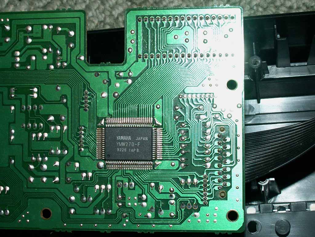 I'm gonna do some testing of the interconnections between the chips to see what's going on. I can't find info on either of the chips, except that the XL437 is a 16bit ROM, and that the sounds (wavetable) are generated by the other chip. This could be good, could be bad.