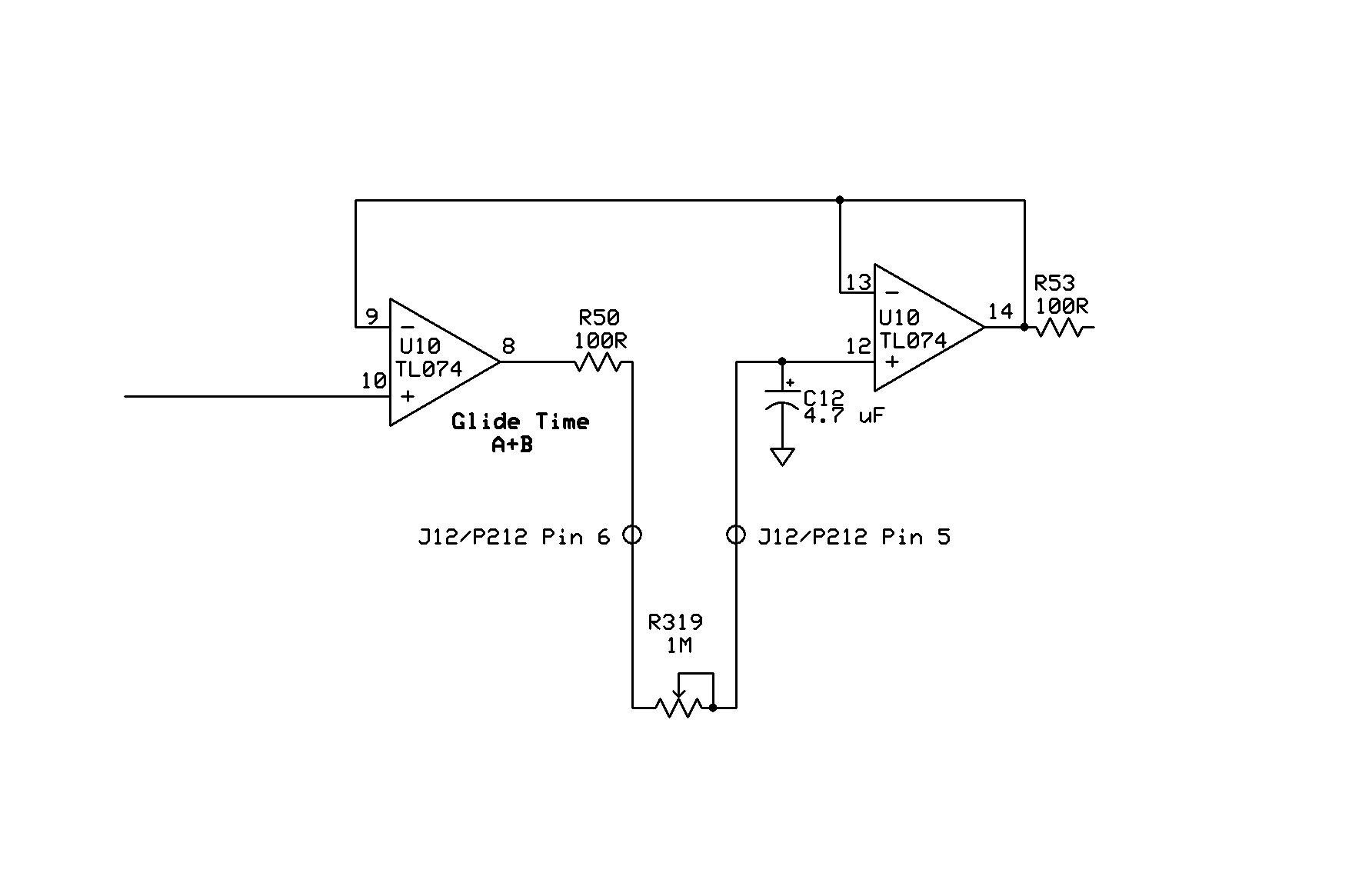 however, unfrequently the A&B output behaves not as it should: the CV glides although i turned the glide pot fully ccw. it happens only sometimes, and when it happens the potentiometer has no effect at all. i did not note any rule here, yet. i rewired this section two times and replaced the potentiometer.