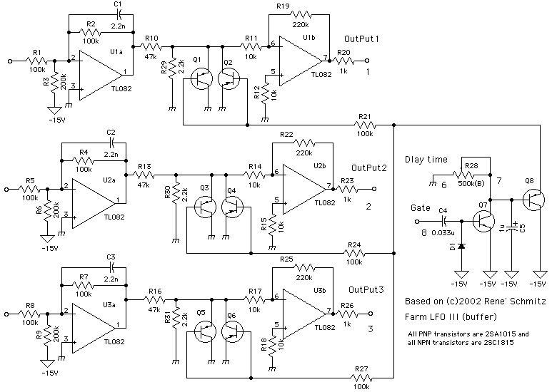 3 Phase LFO originally by Rene Schmitz ,redrawn and adapted with pcb layout by Motohiko Takeda ,added vca buffers ,page here : http://www.aleph.co.jp/~takeda/radio/homemadesynth.html