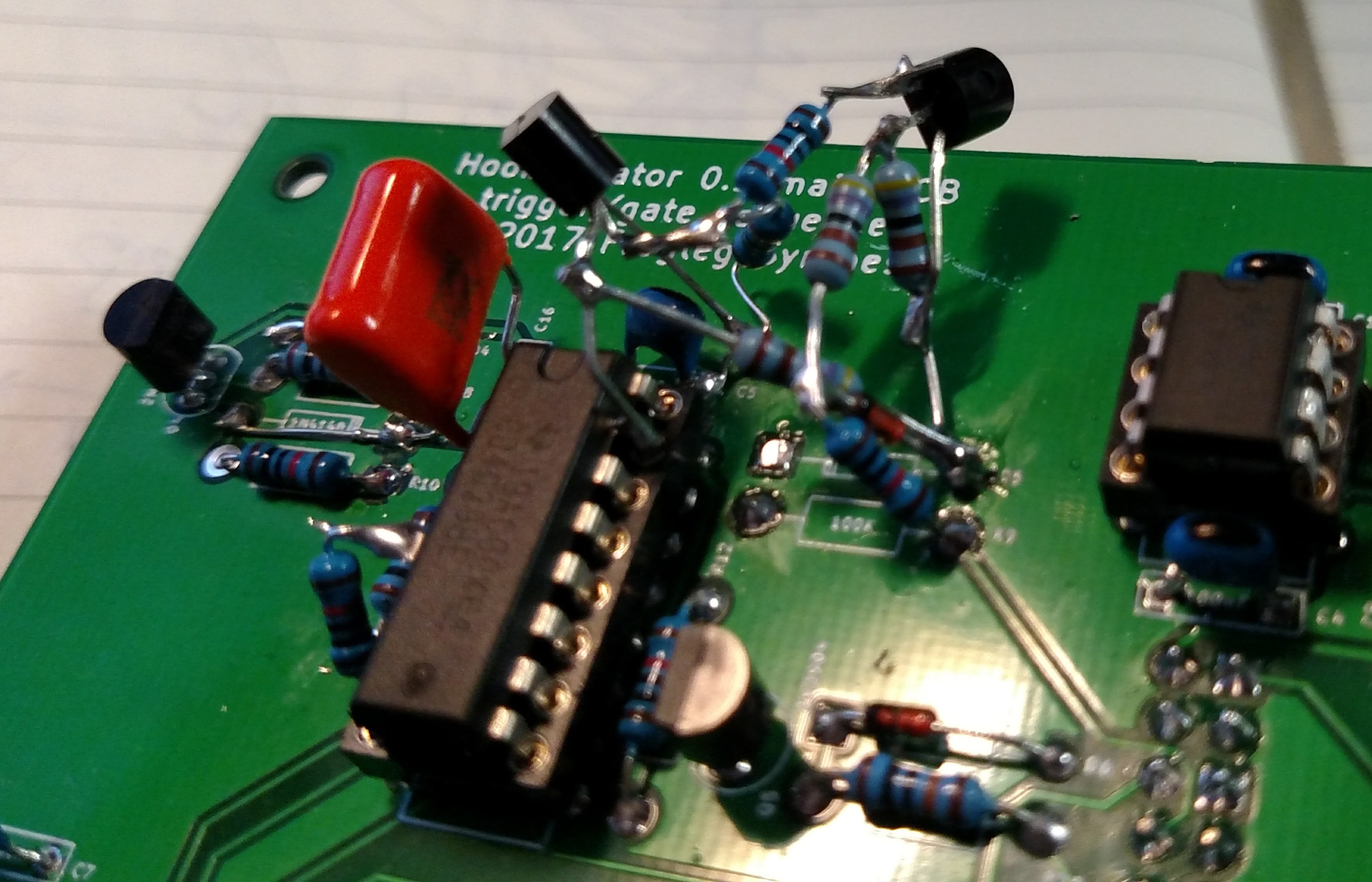 | PHOBoS wrote: | Instead of using 2 schmitt trigger inverters, which won't really help you, use a transistor (configured the same way as