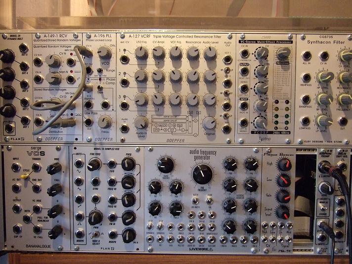 The main modular which is mostly Doepfer plus Analogue Systems, Analogue Solutions, Voxglitch, Bananalogue, Plan B, Livewire, Tiptop, Flight of Harmony, Oakley, Elby, Blacet (spot the Klangwerk) and some DIY.