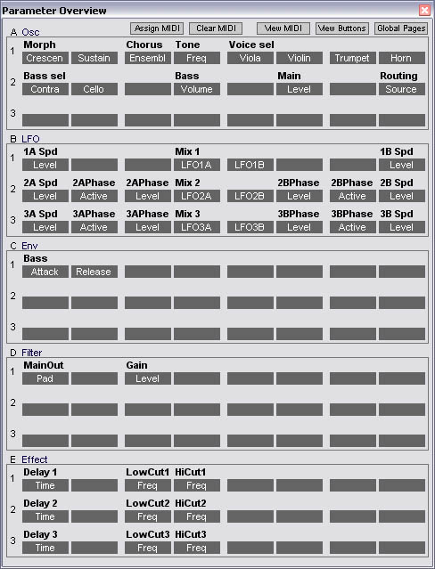 Parameter pages A1 and A2 are the same as in the previous patch version. All other parameter pages have been erased. No variations have been programmed.