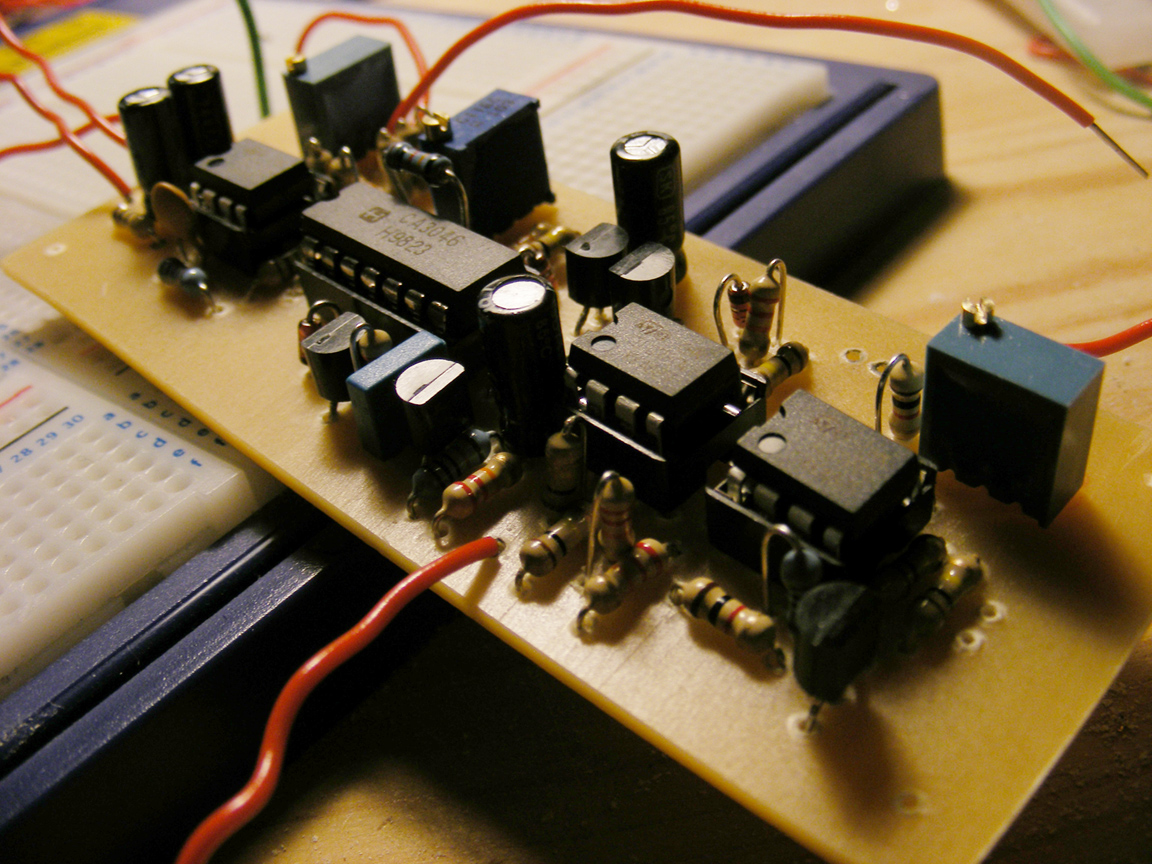 1v/oct control is working (as best as it can without matched trannys), but the high notes need some form of compensation as they are falling flat.