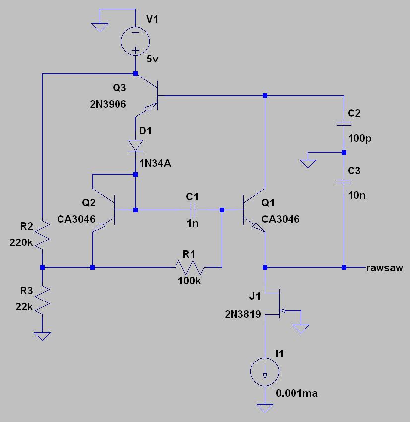 So far I have a working core, producing a very crisp downwards saw tooth waveform.