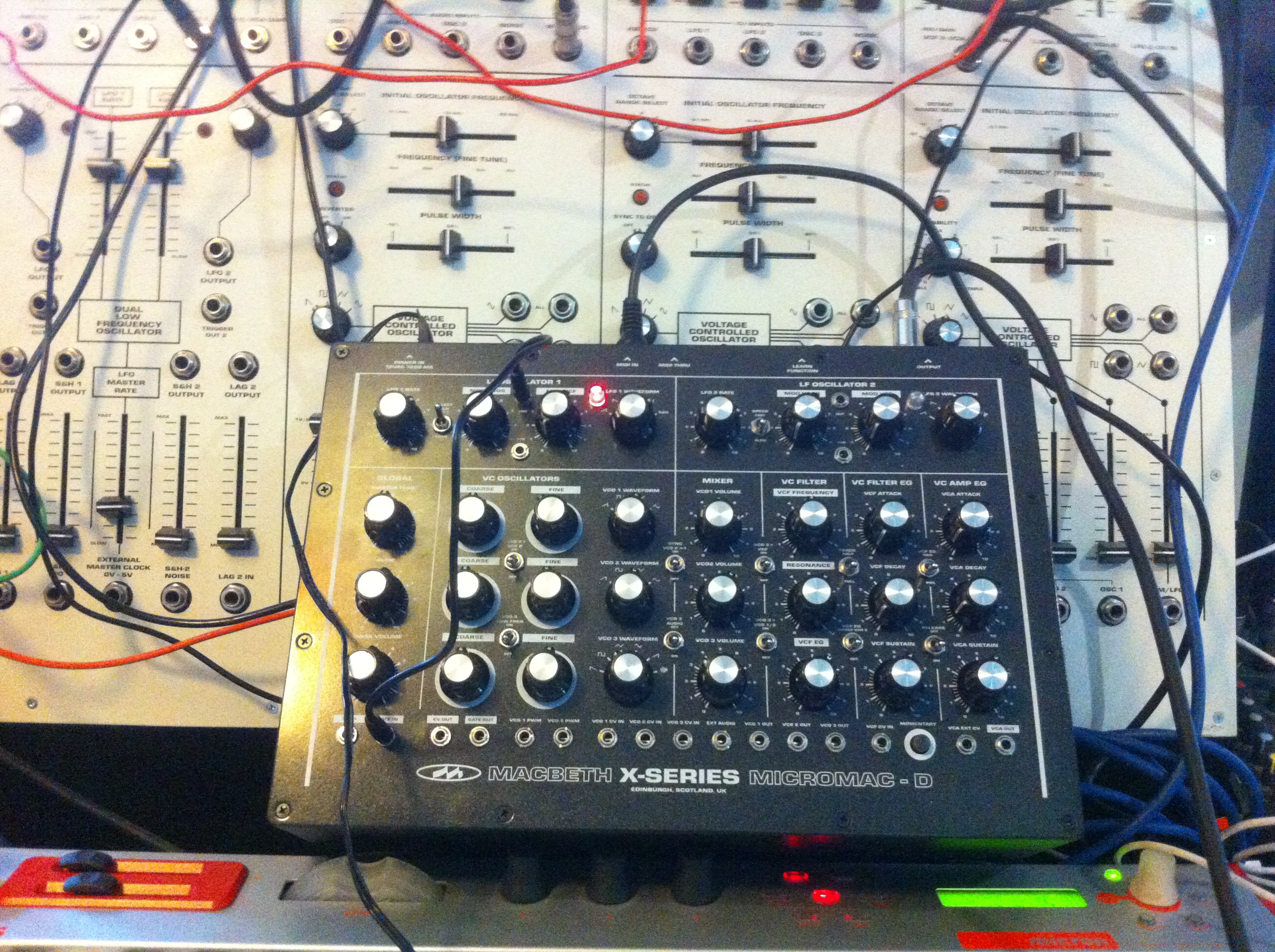 2 LFOs, 3 VCOs, VCF, VCA, 2 EGs, S&H, noise, and a lot of internal signal paths, and a Kenton midi-CV converter built in. The idea was to have something small to work with the Eigenharp, this will do that but it'll also work beautifully with everything else in here. Worth waiting a year for.