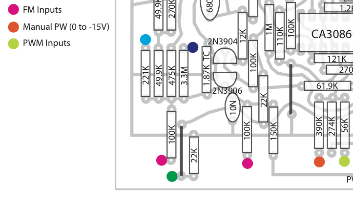 Also, for the VCO-board im troubleshooting, i have put a jumper between the 150k and 100k Sync pads, as its meant to be the master VCO.
