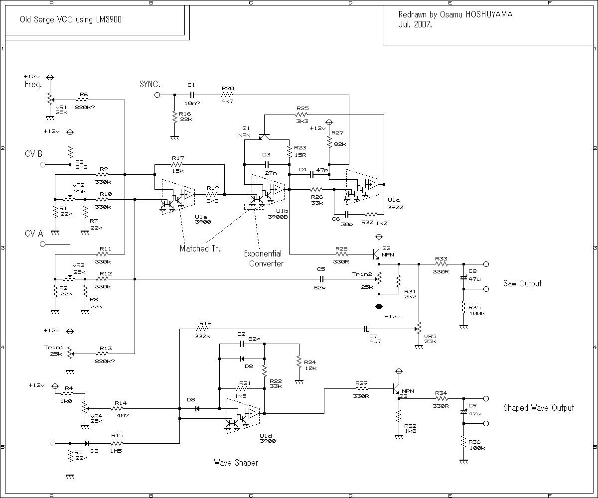 Note on Copyright : electro-music.com always respected the great amount of work, effort and time invested by individuals in making a better synthesizer ,better designs . One can be only grateful that folks who spent their lifetimes in electronics are willing to share their knowledge and findings with the public . This thread will only try to serve as a wider reference to synthesizer schematics for better understanding or for inspiration for the next module .You can PM me if you don't want your work here . Last edited by vladosh on Sat Feb 02, 2013 12:28 pm; edited 4 times in total |