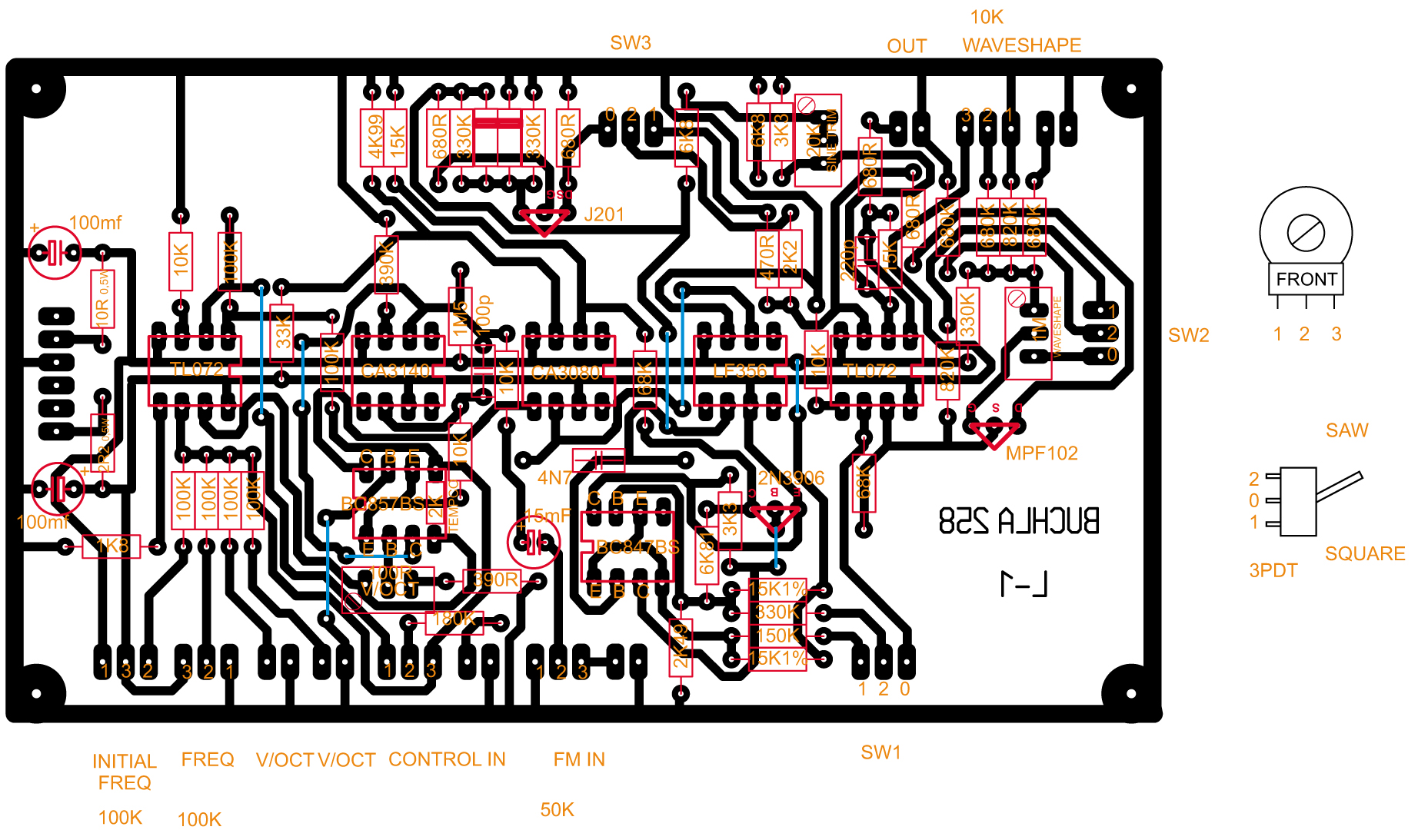 Buchla 258 VCO ,layout original by Mark Verbos ,modified Layout by L1 ,the topic is here : http://srv3.electro-music.com/forum/topic-16502-125.html