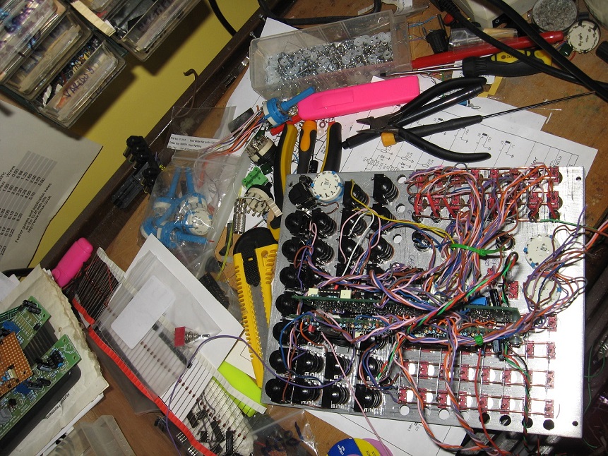 Quick pic of the finished front panel of the dual CGS89 sequencer (Ken Stone)