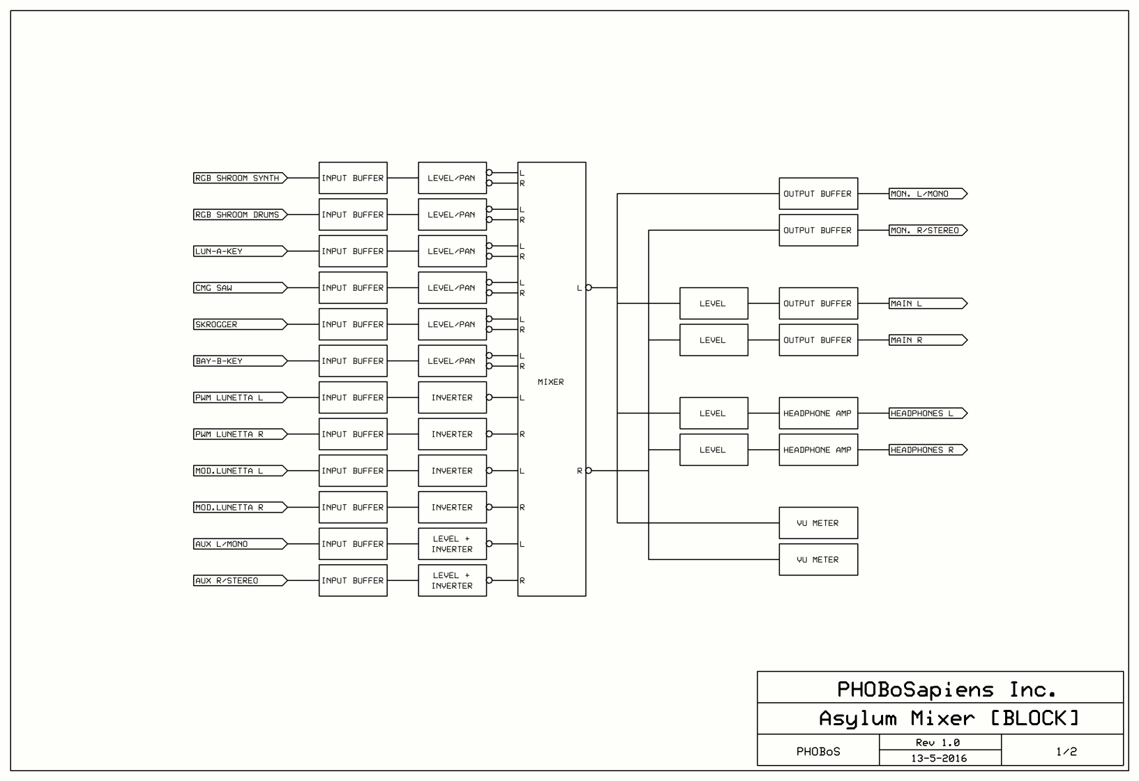 amplifier. The 11K resistors parallel to the level pot of the mono/stereo channel are added to give it a log responce as well. The mixer