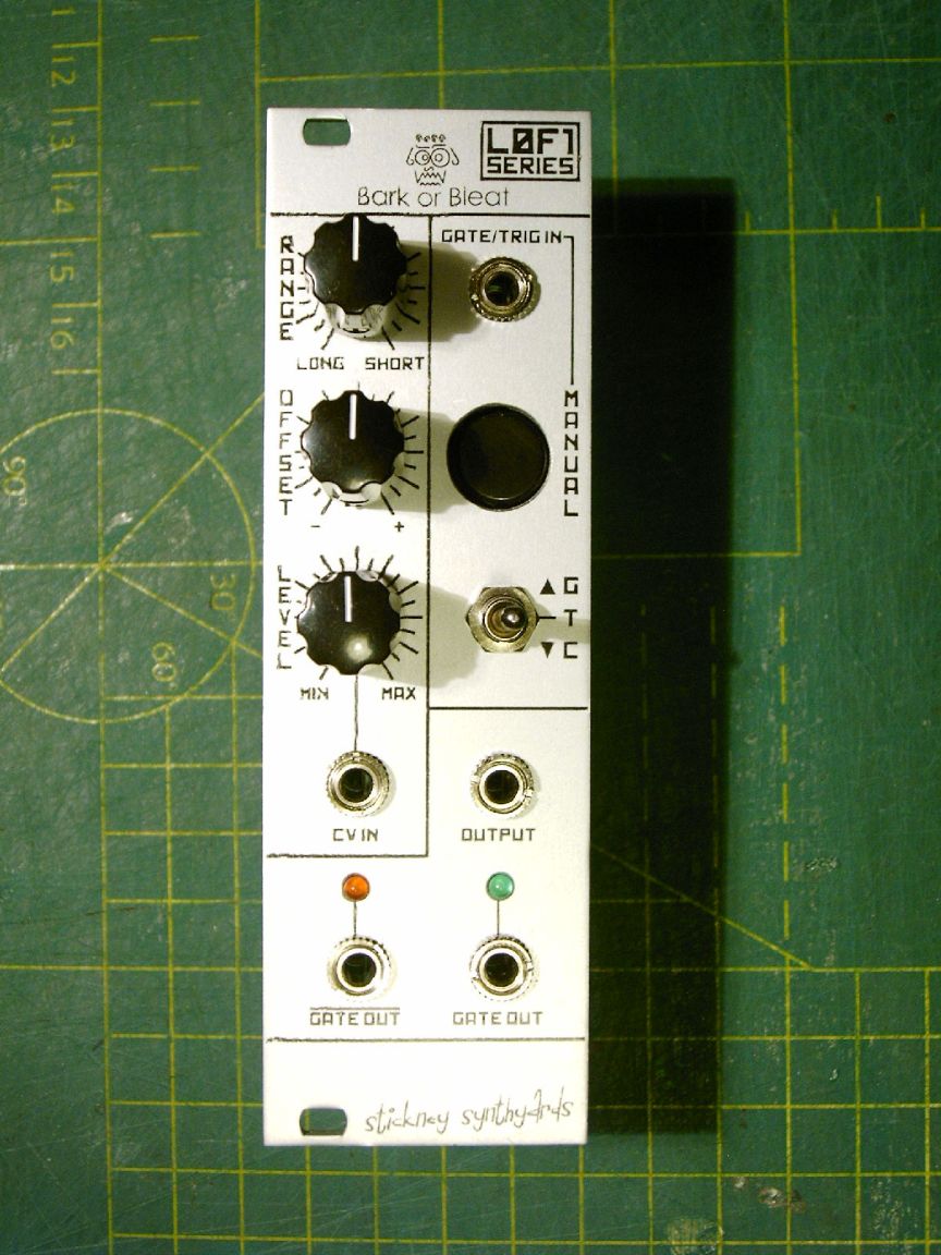 Bark or Bleat is a synthesizer module of the Stickney Synthyards L0F1 series which uses a soundchip that produces a dog or sheep