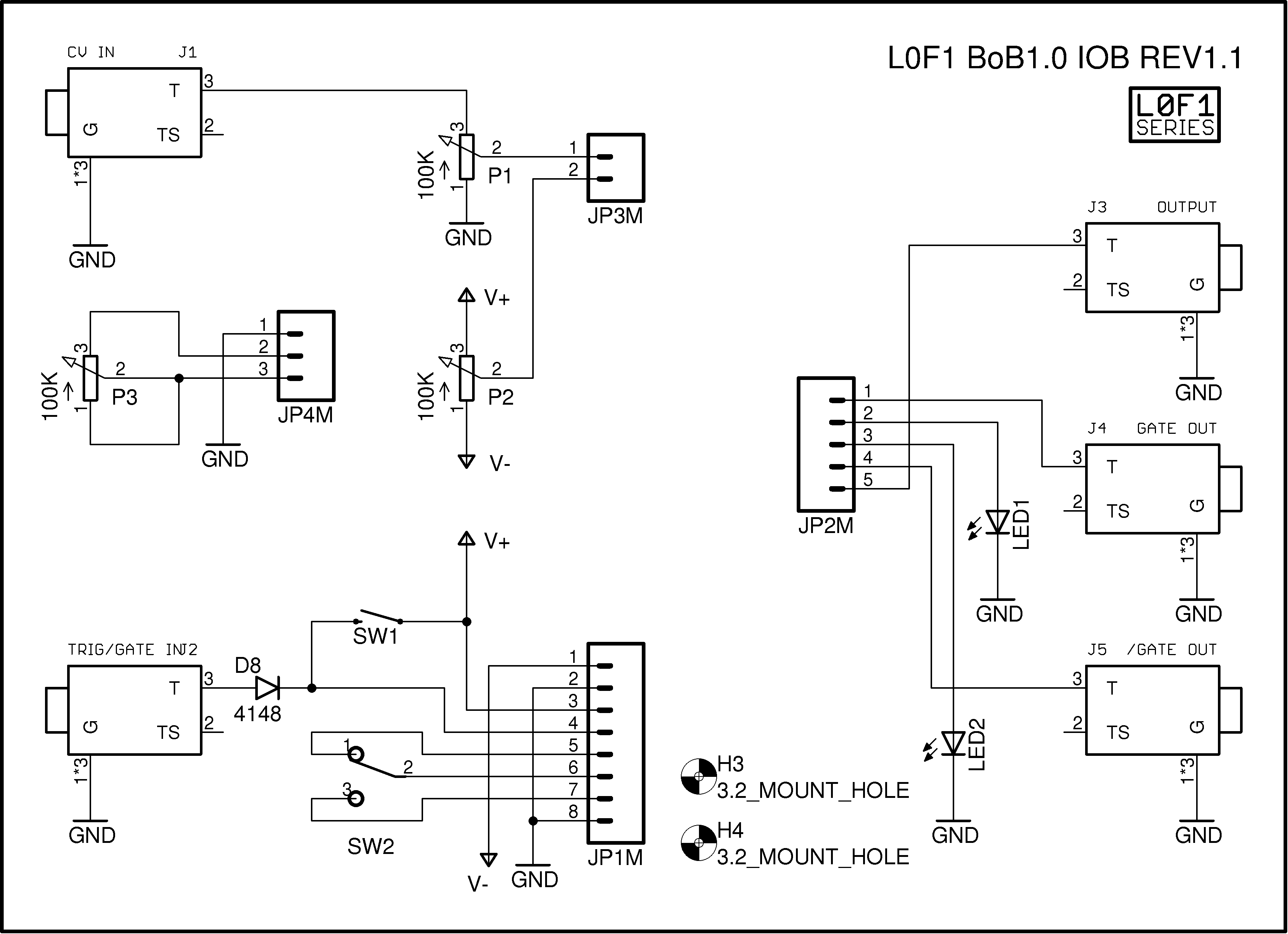 This module has 3 outputs: The main audio output, which has a level of 0..+5V. the GATE output, which is +5V for the duration that the