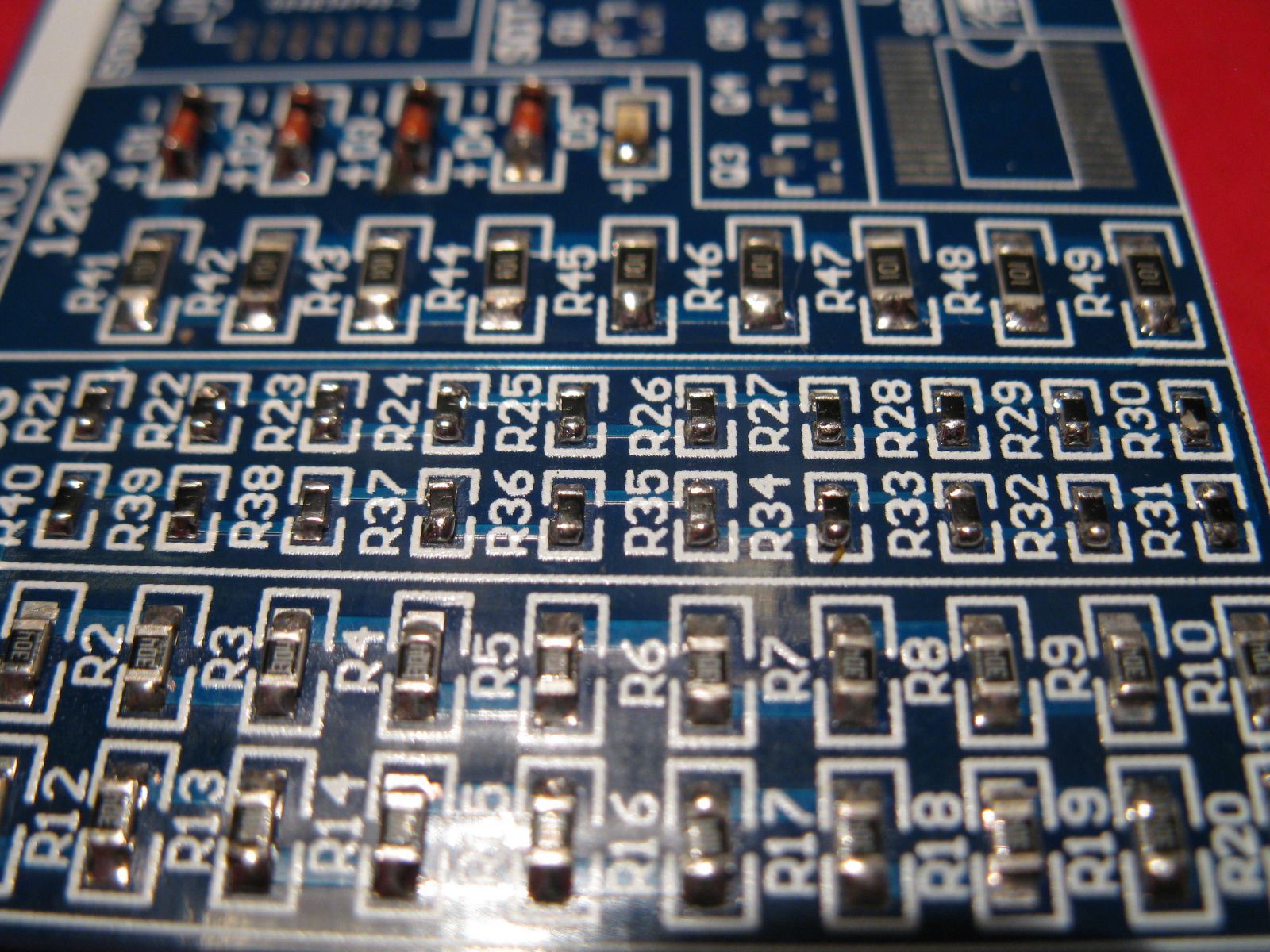 The first 9 1206 resistors are soldered. I have to admit it was already a bit more difficult than I had expected (any tips on