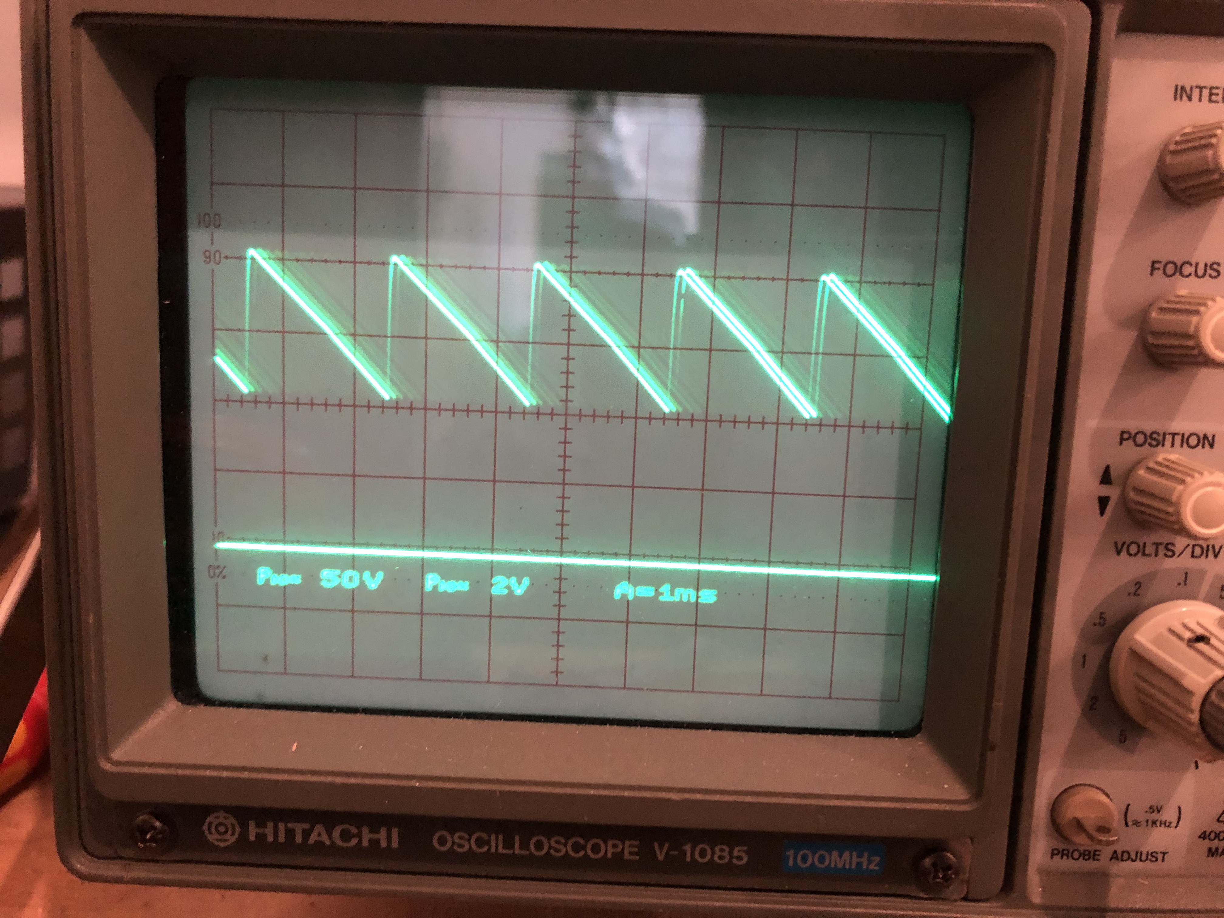 And it breathes its first breath. A nice crisp saw wave. Didn’t have time to do any calibration or testing before heading off to work, but so far it’s looking good. I realized I have an extra jack on my panel since I was under the impression that the oscillator had a dedicated square output that wasn’t affected by pwm. This isn’t the case so I may just throw together an additional saw to square converter just for that fixed square output.