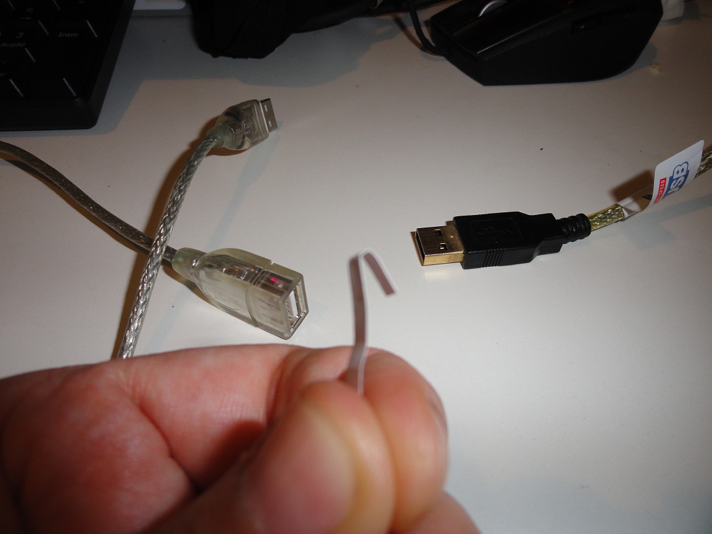 | You need the cable from the G2 to the PC, an USB extension cable, and a tiny bit of paper (probably thin plastic would be better). |