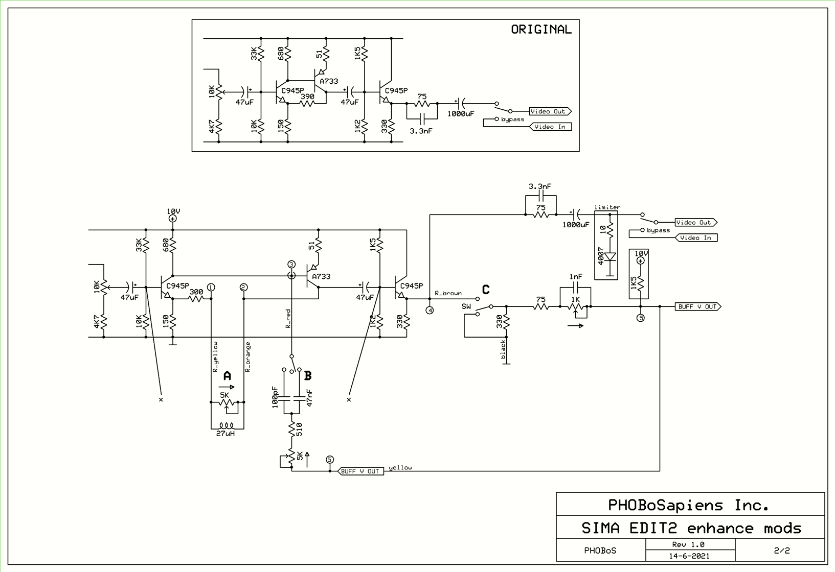 The schematics aren't complete and there might be different versions of the Edit 2, eg an NTSC version with different component