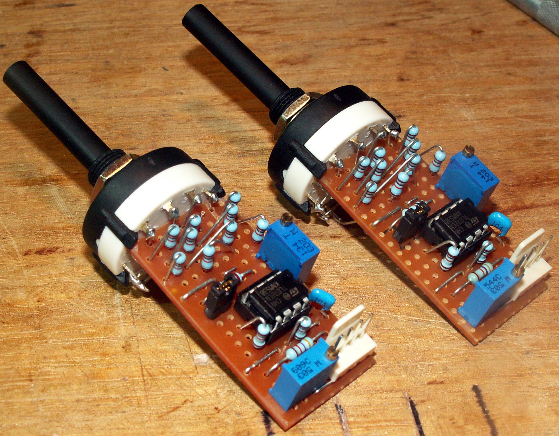 It's designed to solder directly onto a 12 position rotary. Across the position 1 (-8V), Pole, and position 6 (-3V) pins. I actually went for the full 9 position version, which means 10 connections to the switch. All but the aforemention 3 must be made with solid strand wire.