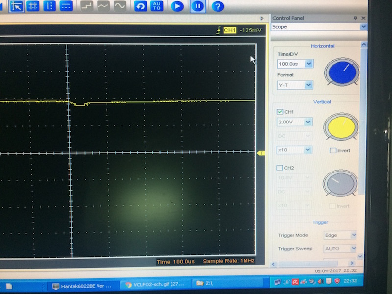 I'm building 3 VC-LFO-2s, and today i've checked the waveforms of my first LFO build. The spikes were here. I've found, that i've used a NE555, which i've replaced with a ICM7555CN (I think it's a Philips part). After a complete recalibration procedure, the spikes are gone. |