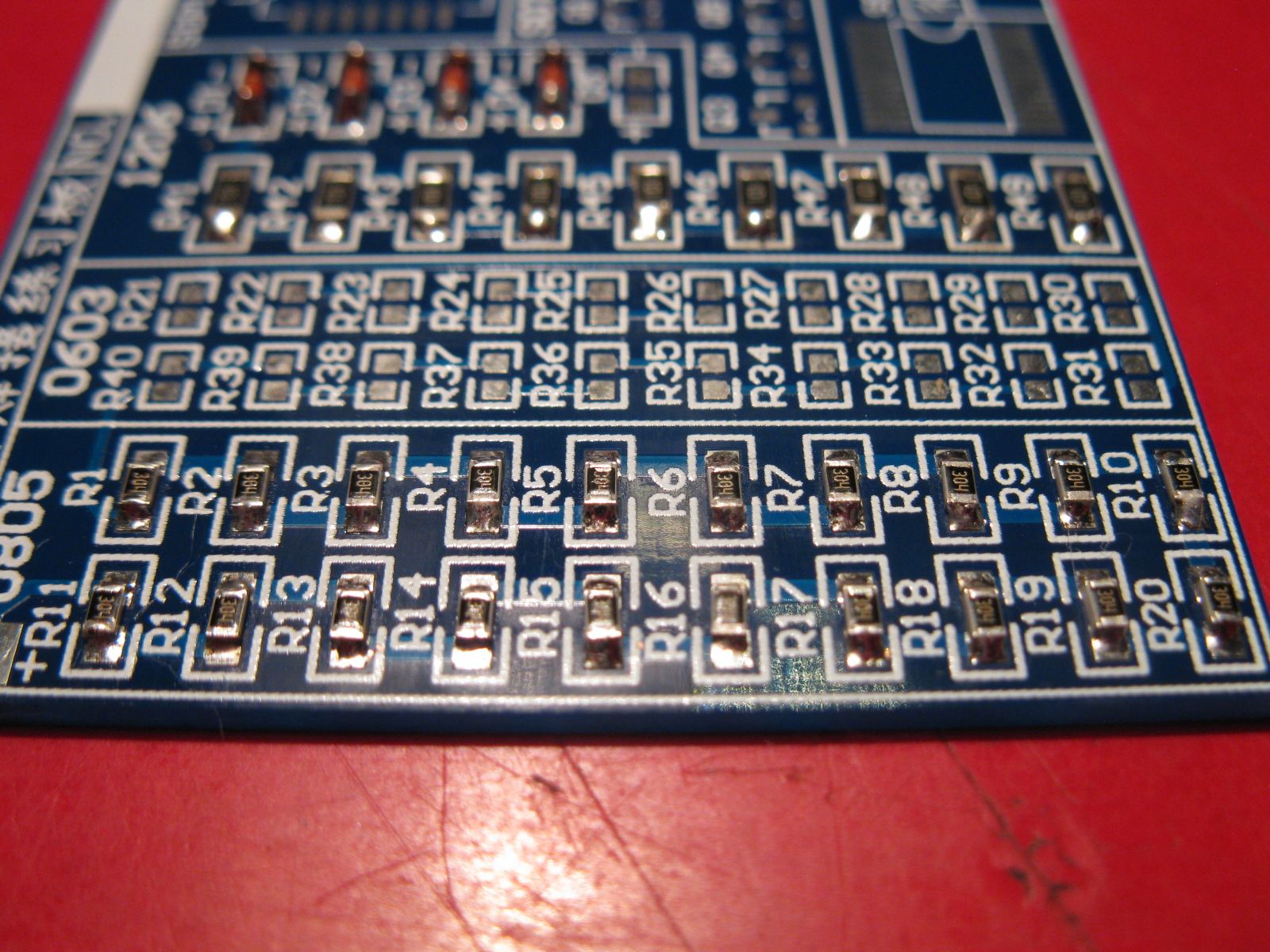 The first 9 1206 resistors are soldered. I have to admit it was already a bit more difficult than I had expected (any tips on
