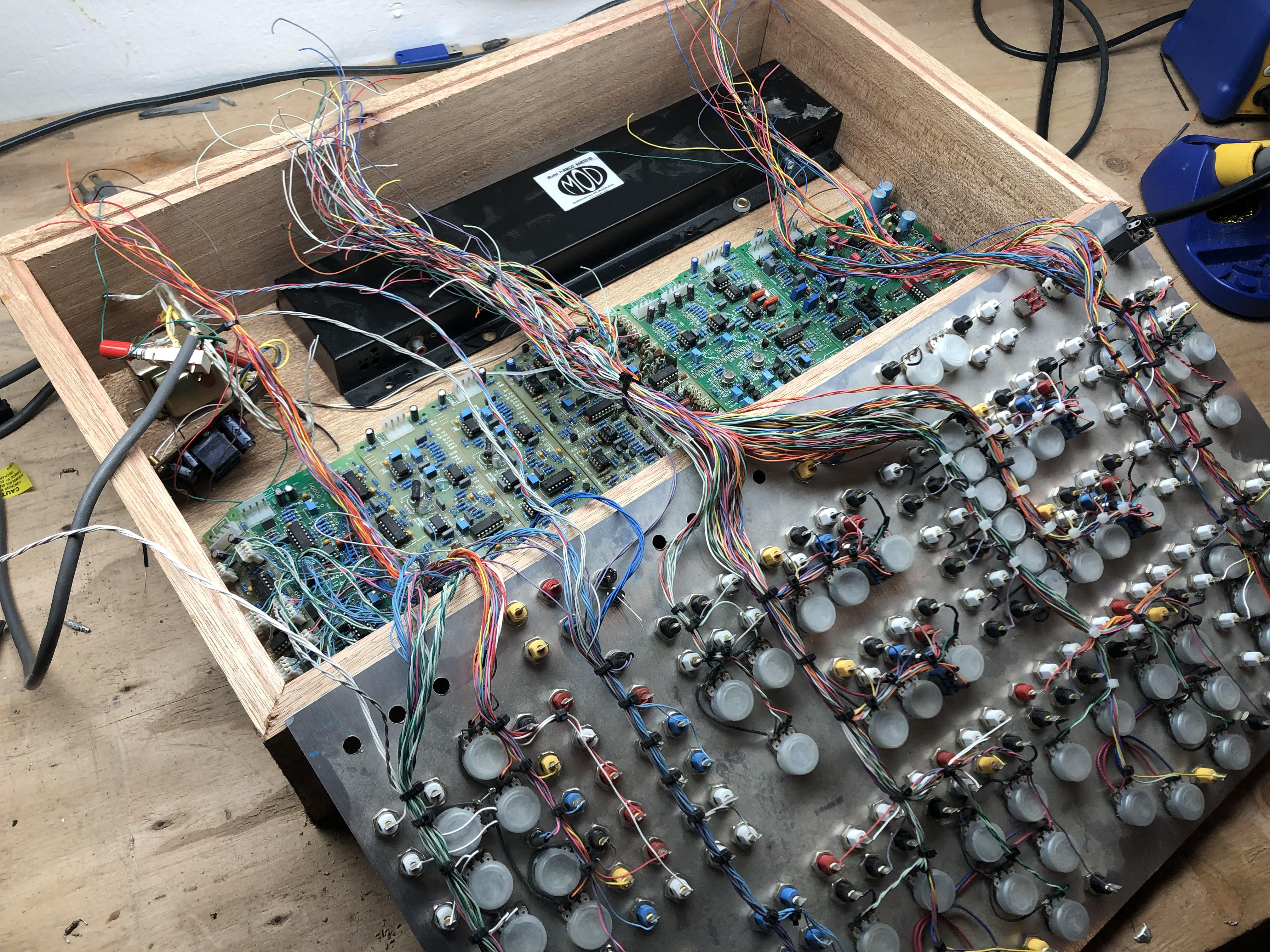 Video synthesis is really interesting - I love the surreal look of some of the effects that can be done. I am personally trying to to hold off from getting into it for fear of an even larger backlog! | Yes, I had some issues with it. I need to change a couple cap values and haven't gotten around to it yet, hopefully I can get that ribbon up and running without changing too much. Video synths have been the main thing I'm working on. Built 9 modules so far, designed a new panel for holding 11 castle series modules, and am also working on my own original circuit for a video logic module. Not to mention a number of arcade machine projects/repairs on the go...