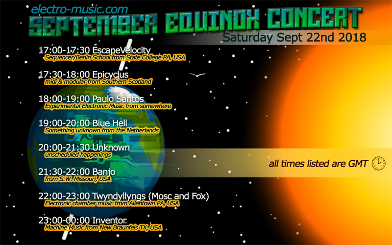 The event will be on electro-music radio on Saturday September 22nd 2018.