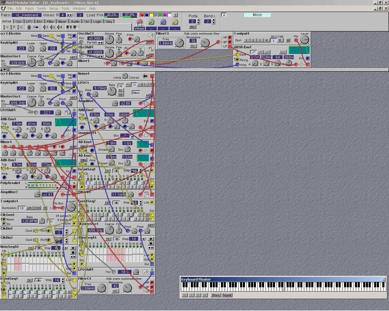 First 12 notes on a keyboard are meant to choose the base note, and Mod. wheel changes chords from Minor (down) to Major (up). It's pretty easy to use and play. I'm attaching a screenshot and an audio file for those without first generation of Nord Modulars. (Don't mention my crappy play abilities - audio file was made in one shot in a hurry)